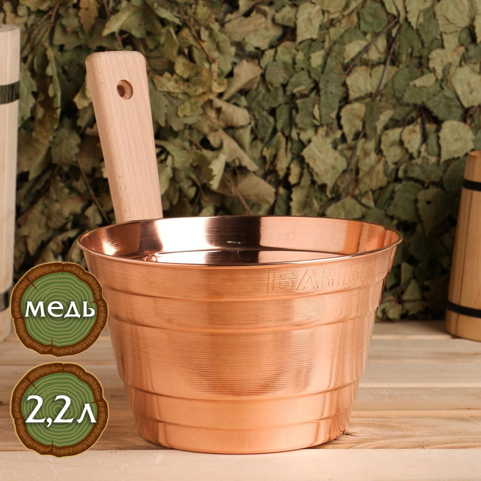 Ушат 2.2л медный с ручкой