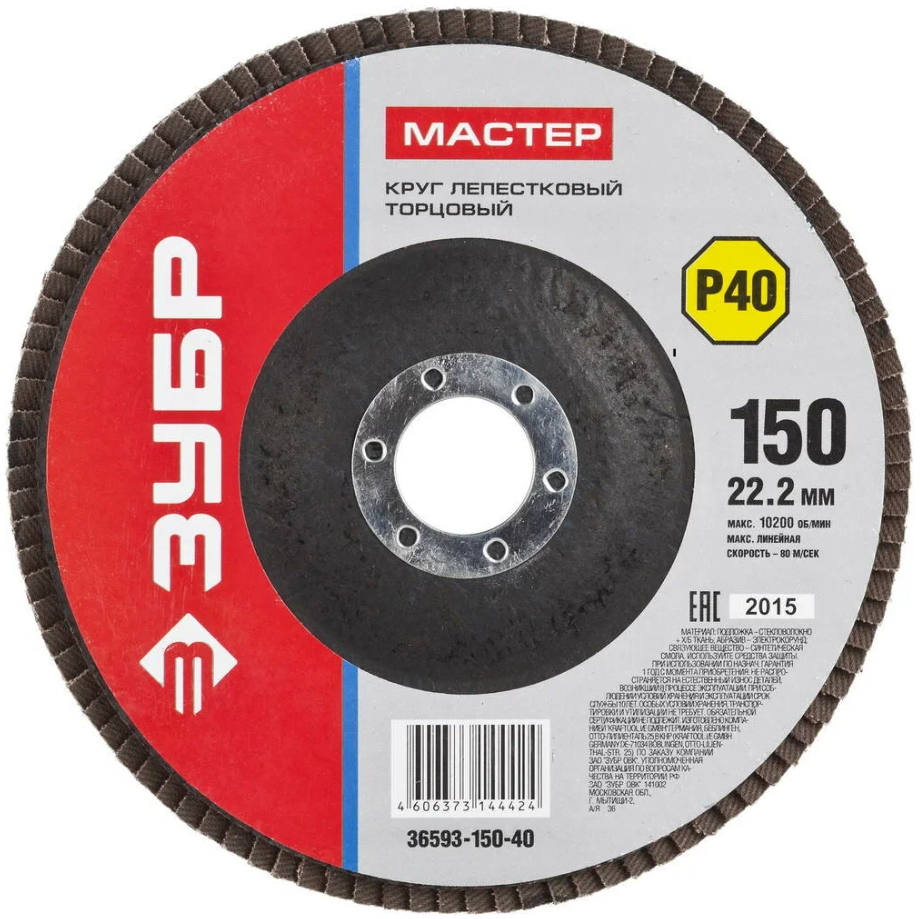 Круг лепестковый торцевой ЗУБР, 150 мм P40 тип КЛТ 1, Мастер, (36593-150-40)