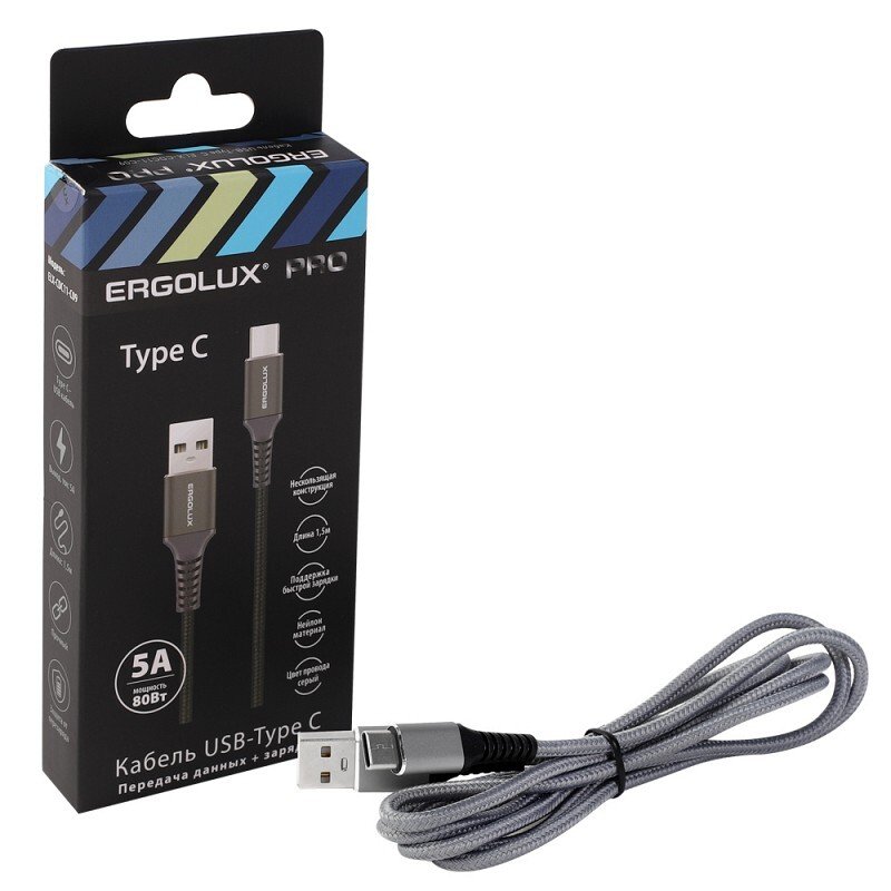 Кабель USB-TypeC 5А 1.5м Серый Ergolux CDC11-C09