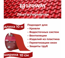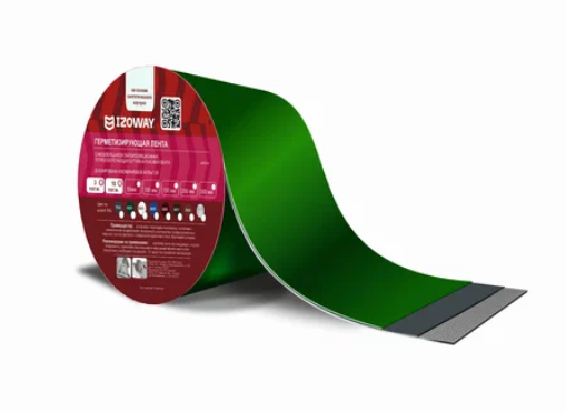 Герметизирующая кровельная лента IZOWAY. Самоклеящаяся герметизирующая и гидроизолирующая лента с защитой от УФ излучения на основе синтетического каучука. В качестве защитного слоя с другой стороны самоклеящегося состава используют антиадгезионную полимерную пленку. Материал предназначен для использования при ремонте и строительстве внутри и снаружи зданий.