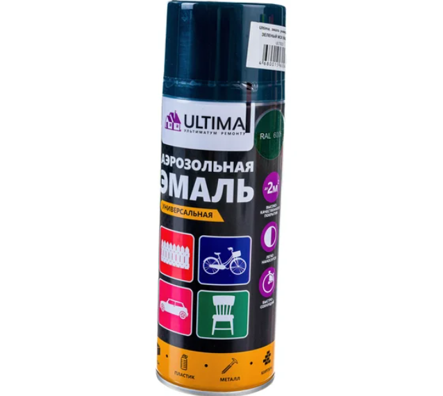 Аэрозольная краска ULTIMA RAL 6005 ЗЕЛЕНЫЙ МОХ универсальная 520 мл ULT033 используется для быстрой и эффективной окраски декоративных элементов.