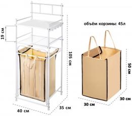 *Стеллаж 40х35х105 см с 2-мя полками и выдвижной корзиной на 45 литров подойдет для компактного хранения одежды, полотенец, белья, игрушек и самых разных вещей. Имеет 4 крючка для подвешивания.