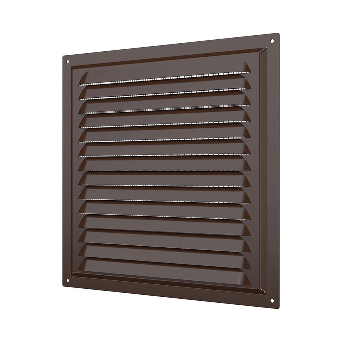 Решетка вентиляционная изготавливается из оцинкованной стали, которая покрывается полимерной эмалью. Имеет наклонные жалюзи. Оснащена антимоскитной сеткой, которая монтируется в специальном углублении, что упрощает процесс ее замены.