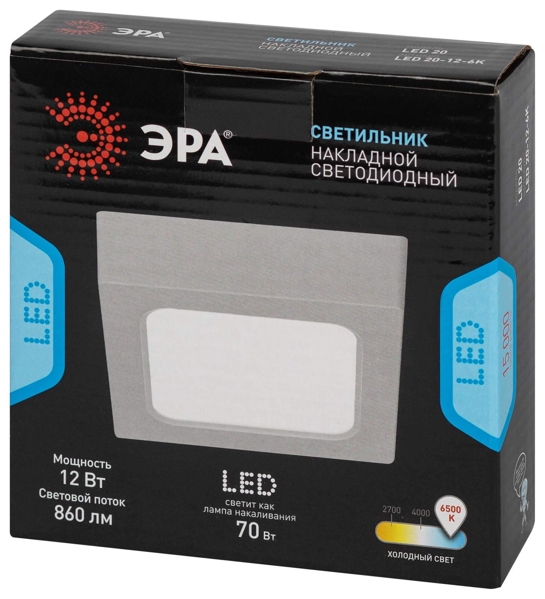 Светильник светодиодный 12Вт 860Лм 6500К IP40 122х122х35 накладной квадратный ЭРА