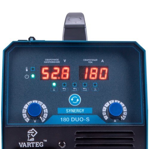 Синергетический сварочный полуавтомат инверторного типа VARTEG 180 DUO-S предназначен для бытового и полупрофессионального использования. Полуавтомат несмотря на свой "малый" размер - имеет обширный диапазон режимов работы. Применяется для полуавтоматической сварки в среде инертных, а также активных газах (CO2 / Ar+CO2) и с использованием самозащитной (флюсовой) проволоки в режиме MIG. А также для дуговой сварки штучным электродом в режиме ММА, и аргонодуговой сварки вольфрамовым электродом при помощи вентильной горелки (TIG LIFT).
