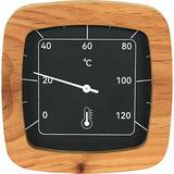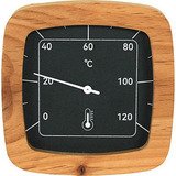 Термометр для бани и сауны. Корпус изготовлен из термообработанной ольхи. Благодаря такой обработке древесина приобретает красивый цвет, ярче выявляется её текстурный рисунок и улучшаются физико-механические свойства: она не боится влаги, стабильно держит форму при колебаниях температуры и влажности, что особенно важно для парной. Циферблат — из окрашенного алюминия толщиной 2 мм, который также не подвержен коррозии в условиях повышенной влажности. Шкала имеет простую и понятную градуировку с ценой деления 10 ℃, благодаря контрастным цветам хорошо различимую с любого расстояния в парном помещении. Имеется возможность калибровки прибора.