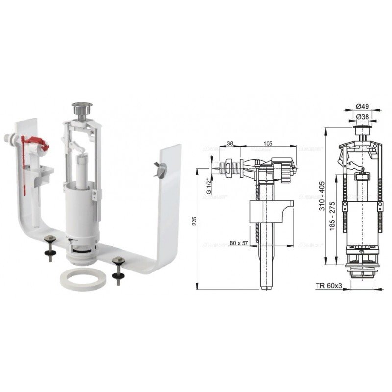 Конструкция позволяет регулировать высоту механизма в зависимости от высоты бачка
