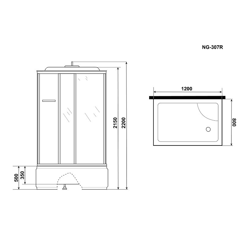 Душевая кабина NG-307-01R (1200х800х2200) высокий поддон