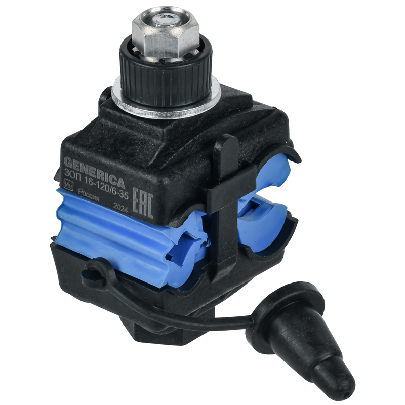 Зажимы ЗОП ТМ GENERICA предназначены для подключения провода СИП к магистральной неизолированной линии. Применимы для алюминиевых и медных проводников напряжением до 1 кВ., а также для ответвления абонентских проводников (проводов освещения). При затягивании болтов ножи контактной пластины образуют надежный электрический контакт, прокалывая изоляцию проводника ответвления. При достижении определенного усилия, достаточного для создания надежного электрического контакта, происходит срыв головки затягиваемого болта. Корпус зажима выполнен из стеклоармированного полиамида и устойчив к УФ излучению.