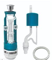 Двухрежимный кнопочный универсальный механизм слива с функцией регулировки малого слива в комплекте с нижним наполнительным клапаном противодавления.