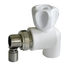 Кран шаровой PPR белый 25 х 1/2" НР для радиатора угловой ФД-пласт