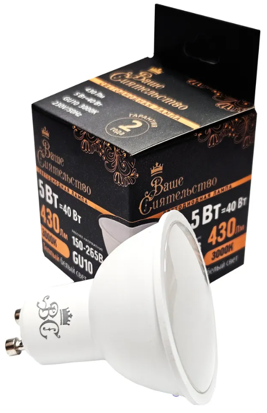 Лампа светодиодная LED Ваше Сиятельство GU10 5Вт MR16 52x50мм 3000K тёплый свет