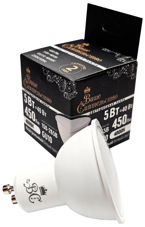 Лампа светодиодная LED Ваше Сиятельство GU10 5Вт MR16 52x50мм 4000K нейтральный свет