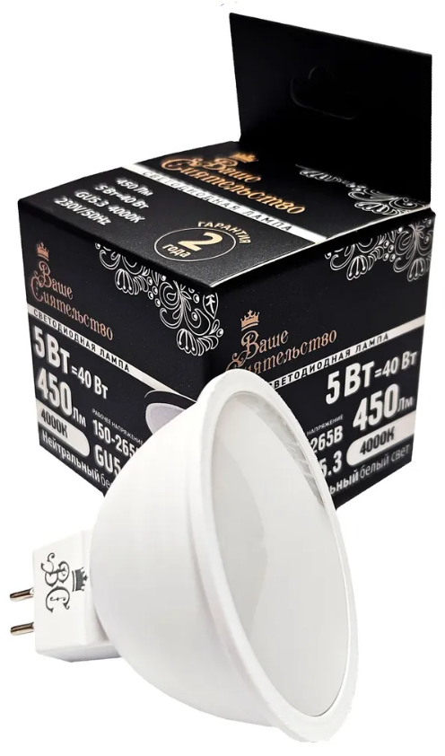 Лампа светодиодная LED Ваше Сиятельство GU5.3 5Вт MR16 46x50мм 4000K нейтральный свет