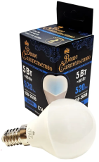 Лампа светодиодная LED Ваше Сиятельство Е14 5Вт G45 шар 6500K холодный свет