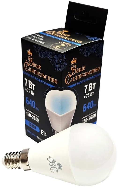 Лампа светодиодная LED Ваше Сиятельство Е14 7Вт G45 шар 6500K холодный свет