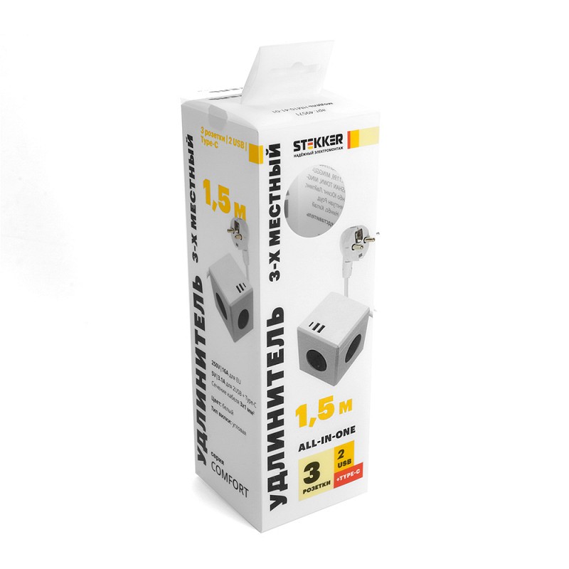 Удлинитель 3-местный c/з 1.5м (3x1мм2) Comfort белый
