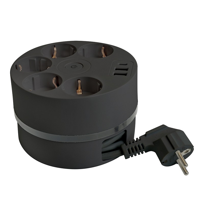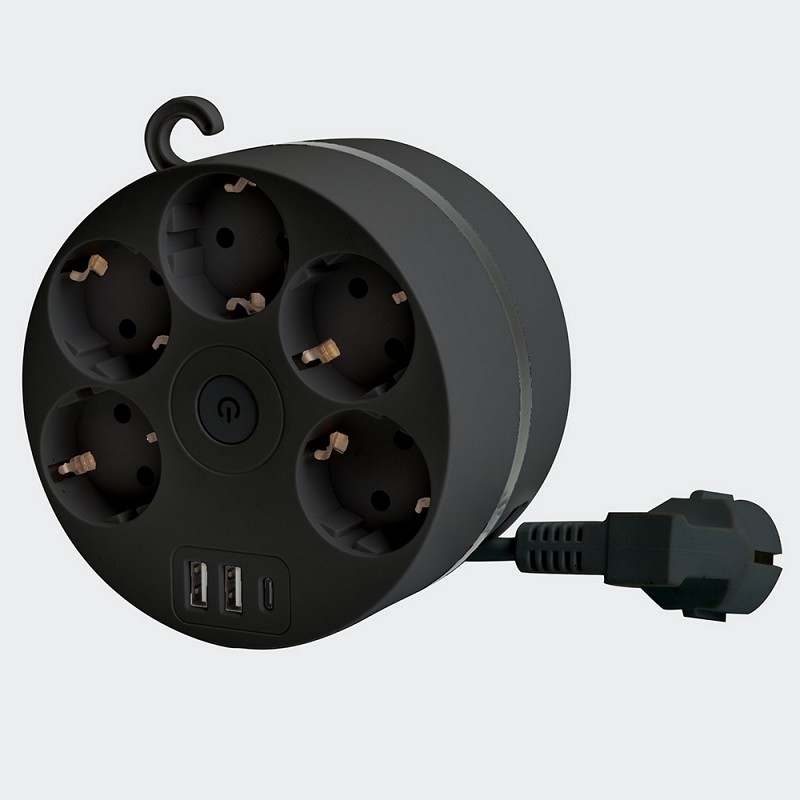 Удлинитель 5-местный+2USB c/з 2.5м ( 3x1мм2) 250В 16А 5V 3.1А черный