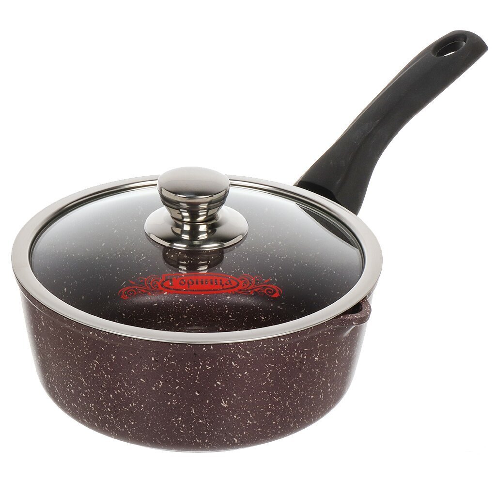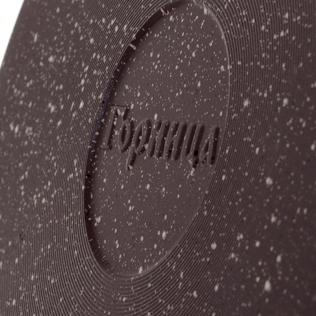 «Шоколад». Коллекция посуды с улучшенным четырехслойным антипригарным покрытием. Дополнительный слой с мраморным эффектом увеличивает износостойкость и создает оригинальный цветовой эффект мрамора шоколадного оттенка. Литой пищевой алюминий не имеет канцерогенных веществ и посторонних запахов. Толстые стенки и дно обеспечивают равномерное приготовление блюда. Посуда не деформируется при нагревании. Антипригарное покрытие на водной основе без вредных химических соединений: экологично и безопасно. Мелкие царапины не влияют на безопасность антипригарного покрытия. В ковше можно готовить без масла, его легко мыть. Ручки, благодаря покрытию софт-тач, не нагреваются и не выскальзывают из рук.