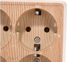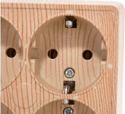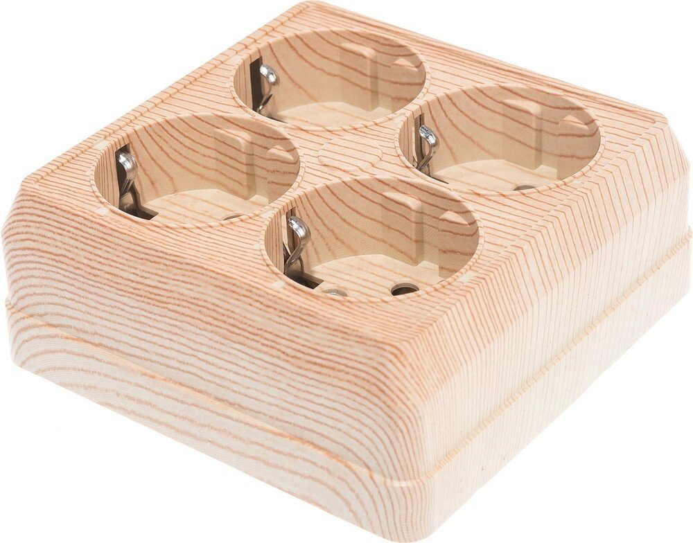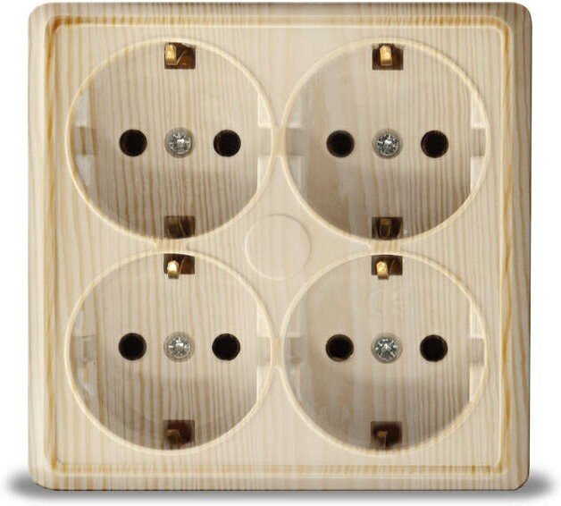 Розетка 4-м ОП Олимп с заземл. квадрат сосна UNIVersal 1177 представлена потребителю в серии "Олимп".