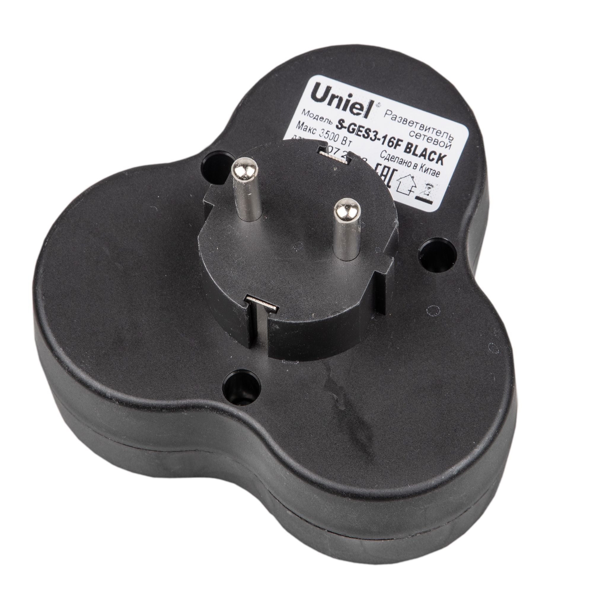 Разветвитель сетевой с/з 3гнезда 16А Черный Uniel S-GES3-16F