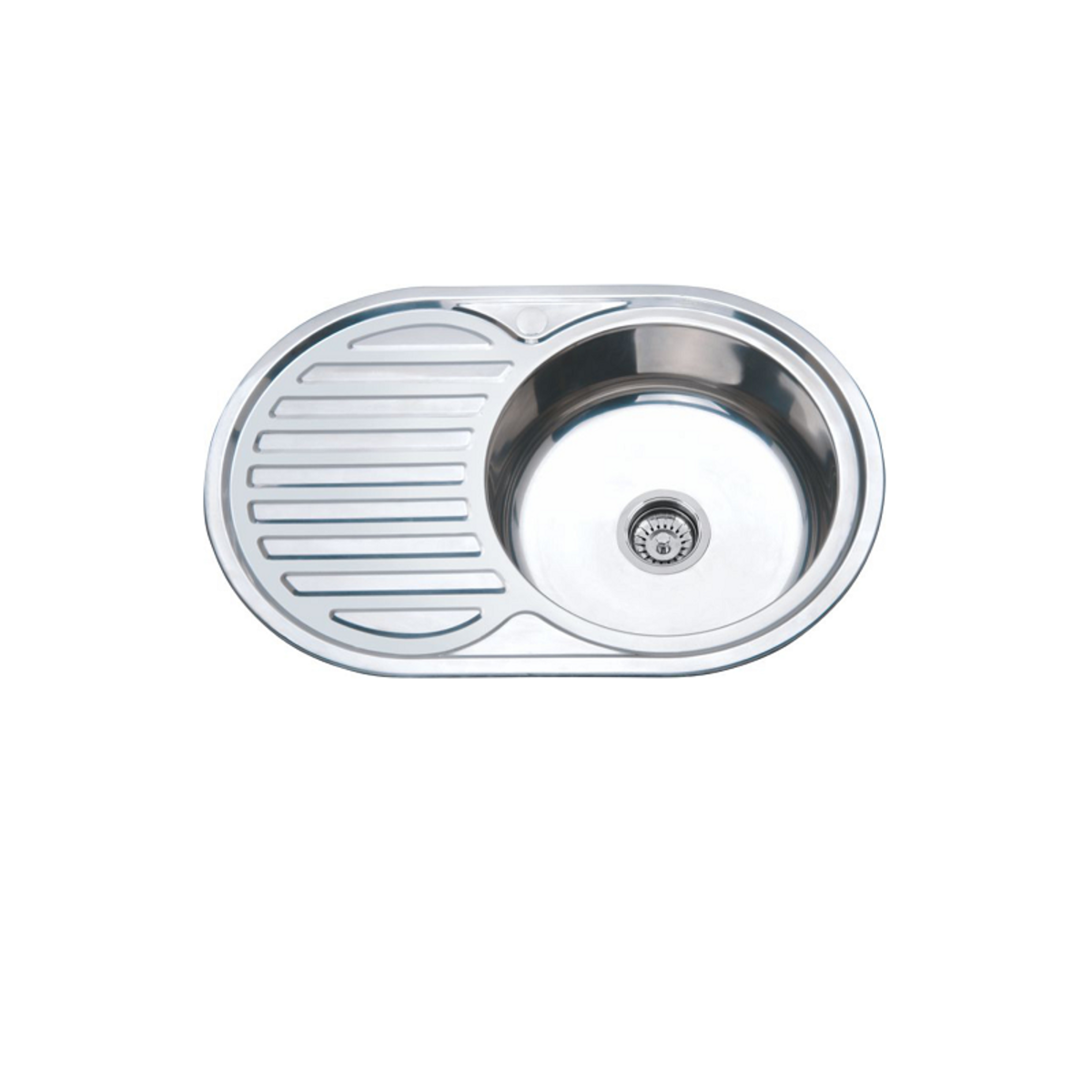 Врезная мойка для кухни из нержавеющей стали РМС, выполнена в стандартной овальной форме, что позволяет удачно вписать модель в кухонный гарнитур.
