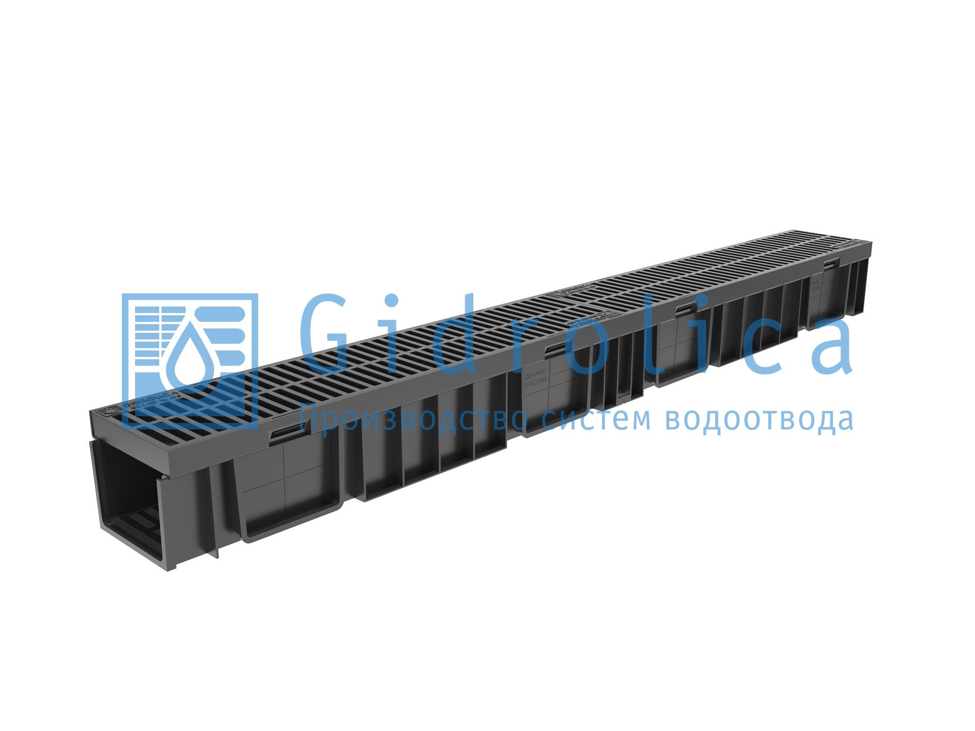 Комплект: Лоток водоотводный Gidrolica Light ЛВ -10.11,5.9,6 пластик с решеткой РВ- 10.11.50 пластик A15