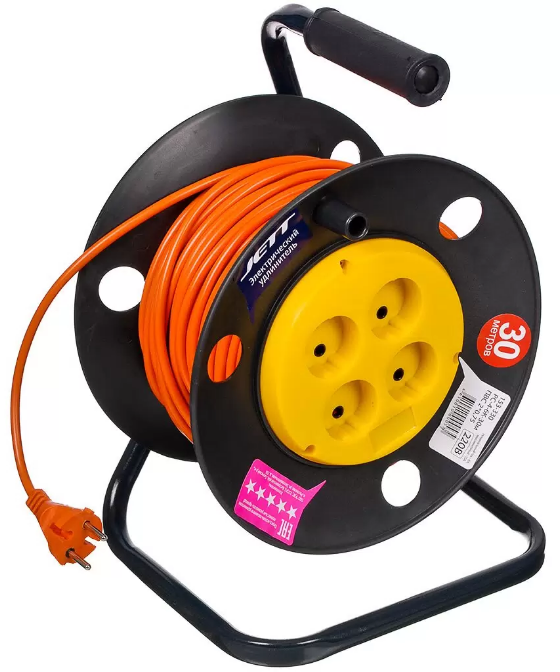 Удлинитель на катушке 30м (ПВС2х2.5) 4розетки без заземления 16A Jett 153-530