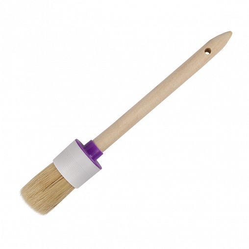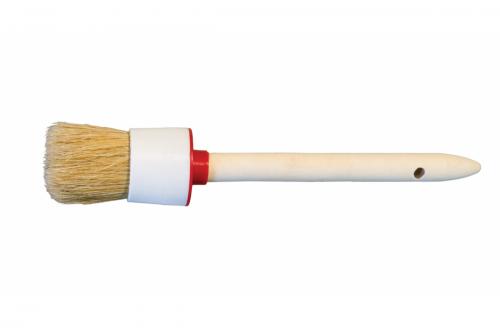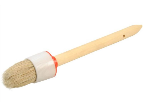 Круглая кисть поможет без труда провести малярные работы. Имеет натуральную щетину диаметром 40 мм, которая обладает хорошими краскообменными свойствами и отлично удерживает лакокрасочный материал и равномерно распределяет краску по поверхности.