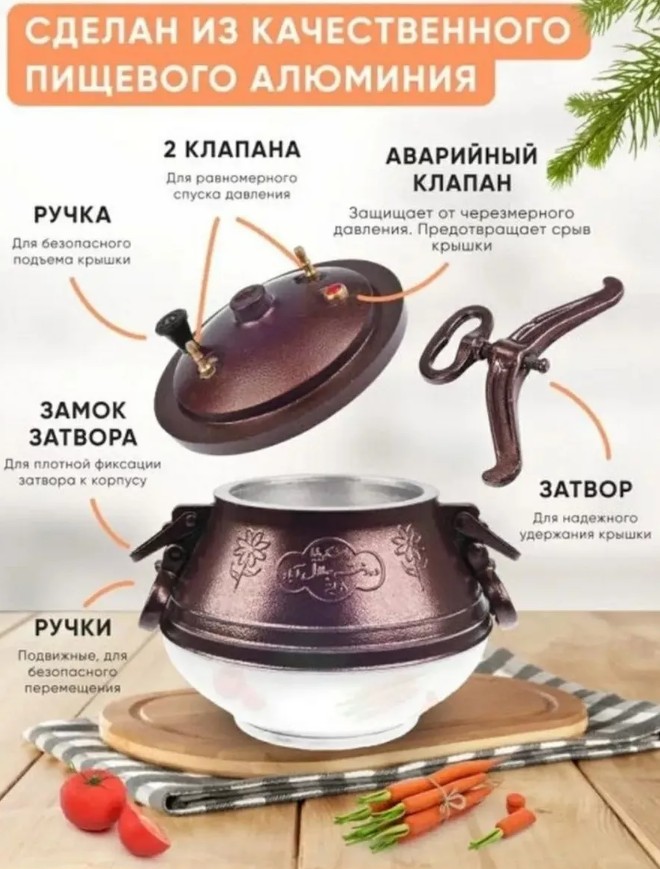 Комплектация казан афганский; крышка; 2 калпана; затвор; инструкция