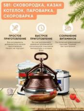 Казан Афганский - это традиционная посуда из Афганистана для быстрого и простого приготовления полезной пищи. Этот казан изготовлен из качественного пищевого алюминия и представлен в разных вариантах. Среди предложенного ассортимента можно казанок разного объема: 5л, 8л, 10л, 15л, а также 20 и 30 литров. Не составит труда подобрать чугунок на разное количество персон, главное определиться с размером и выбрать казан подходящий для Вашей семьи. Казан афганский оснащен подвижными ручками для безопасного перемещения, аварийным клапаном, который предотвращает срыв крышки и надежным замком для плотной фиксации затвора к корпусу. Афганский казан также может использоваться и на природе, и дома. Казанок идеально подходит для приготовления настоящего плова, лагмана, мяса, супа или любых других блюд, требующих высокой температуры и давления, при этом постепенный равномерный прогрев способствует сохранению витаминов. Казаны с круглым дном одновременно функциональные и красивые. Крышка съемная, имеет удобную ручку для безопасного подъема, что позволяет легко добавлять ингредиенты во время приготовления пищи. Это оригинальный продукт из Афганистана, который использовался многими поколениями и остается востребованным по сей день. Казанок подойдет для газовой, электрической, индукционной плиты, духовки, печи, открытого огня и мангала, любой варочной панели и печки. Это оригинальная продукция, на которой предусмотрено фирменное клеймо в виде ромашки. Кухонная утварь с толстыми стенками толщиной 12 мм заменит вам различный кухонный инвентарь: он может использоваться вместо чугунной сковородки, как казан, котелок, пароварка и кастрюля - скороварка. Приготовление блюд при этом оказывается невероятно простым и интуитивно понятным. За счет внутреннего давления существенно повышается температура и ускоряется процесс приготовления, тепло долго держится внутри. Прогрев внутри осуществляется поэтапно и равномерно, тушение происходит без пригорания.
