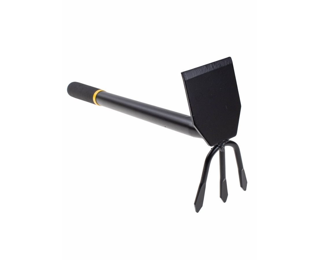 Мотыжка комбинированная с резиновой ручкой, 40см. Мотыга комбинированная - это классический садовый инструмент для сада и огорода, без которого не может обойтись ни один хозяин земельного участка. Мотыжка предназначена для прополки и рыхления почвы, насыщение грунта кислородом и удаления сорняков. Небольшие размеры и высокая прочность делают инструмент незаменимым для традиционных работ по рыхлению грунта и почвы в теплице, на даче, саду и огороде. Прорезиненная ручка удобно ложится в ладонь и препятствует выскальзыванию тяпки во время работ. Садовый инвентарь изготовлен из прочной стали и прослужит вам не один год. Рабочая металлическая часть покрыта защитной эмалью, препятствующей коррозии. Каждый сезон садовый инвентарь требует пополнения, и наша комбинированная мотыжка займёт в нем достойное место. Универсальный инструмент может стать очень нужным подарком хозяйке, маме и бабушке, свекрови и теще, и просто отличным приобретением для себя. Так же в нашем магазине Вы можете приобрести рыхлитель (культиватор) садовый ручной для рыхления и прополки земли и почвы, лопатка садовая металлическая маленькая (совок посадочный для рассады универсальный), грабли садовые металлические для дачи и огорода.