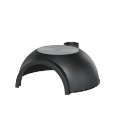 Чугунный купол печи Везувий Легенда Гарден полусферической формы. Верхняя часть купола «отсечена» и там расположена большая чугунная конфорка Везувий диаметром 400 мм. Конфорка съёмная, двухсоставная. Она позволяет разместить над огнём казан на двенадцать литров, сковороду или круглую решётку Везувий диаметром 38 см.