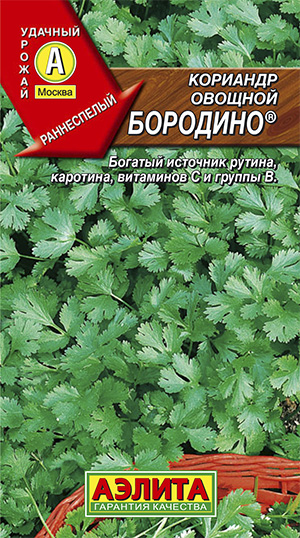 Сорт раннеспелый, период от полных всходов до уборки на зелень 30-35 дней, на специи 50-55 дней. Высота растения – 30-35 см, масса растения в технической спелости 20-25 г. Урожайность сорта 1,9-2,3 кг/м2. Кориандр (или кинза) – эфиромасличное, пряное, овощное, лекарственное и медоносное растение. Используется зелень и семена. Зелень – богатый источник рутина, каротина, витаминов С и группы В, кальция, магния и фосфора. Зелень кориандра применяется в свежем виде как приправа к мясным и овощным блюдам, ее кладут в супы, соусы, из нее готовят многообразные приправы впрок. Семена с пряным запахом и сладковатым вкусом широко используются в хлебопечении, при консервировании, в повседневной кулинарии.