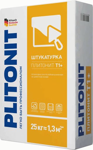 Плитонит Т1+ штукатурка на цементной основе с армирующими волокнами и повышенными водоотталкивающими свойствами для грубого выравнивания поверхностей внутри и снаружи помещений слоем до 30 мм. Предназначена для выравнивания стен из бетона, кирпича, газобетона, а также заделки стыков и отдельных неровностей бетонных и железобетонных плит в сухих, влажных помещениях и для наружных работ.