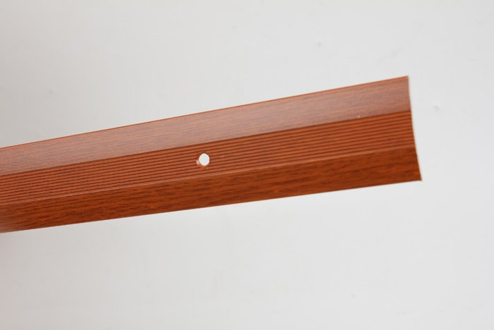 Данная модель предназначена для скрытия стыков двух одноуровневых напольных покрытий, изготовленных из различных материалов. Пороги с отверстиями для монтажа поставляются в индивидуальной упаковке с саморезами (d 3,0 мм х 25,0 мм) и дюбелями.