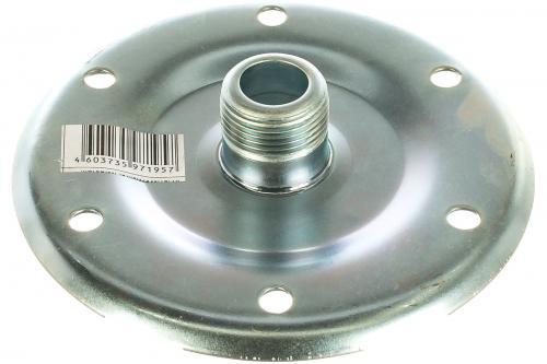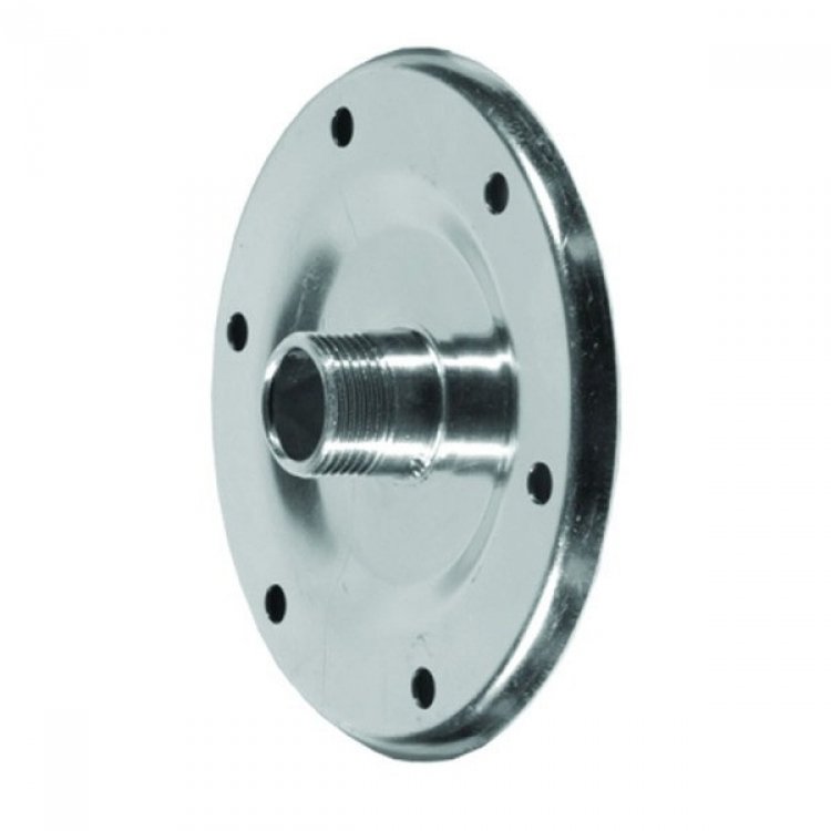 Фланец для гидроаккумулятора является его неотъемлемой частью. Деталь обеспечивает возможность производить замену резиновой мембраны в гидроаккумуляторе водоснабжения и отопления. Подключение гидроаккумулятора к системе водоснабжения или отопления происходит через резьбовой патрубок. Крепится по кругу шестью болтами, из оцинкованной или нержавеющей стали. По центру фланца гидроаккумулятора имеется резьбовой присоединительный патрубок с установочным размером 1".