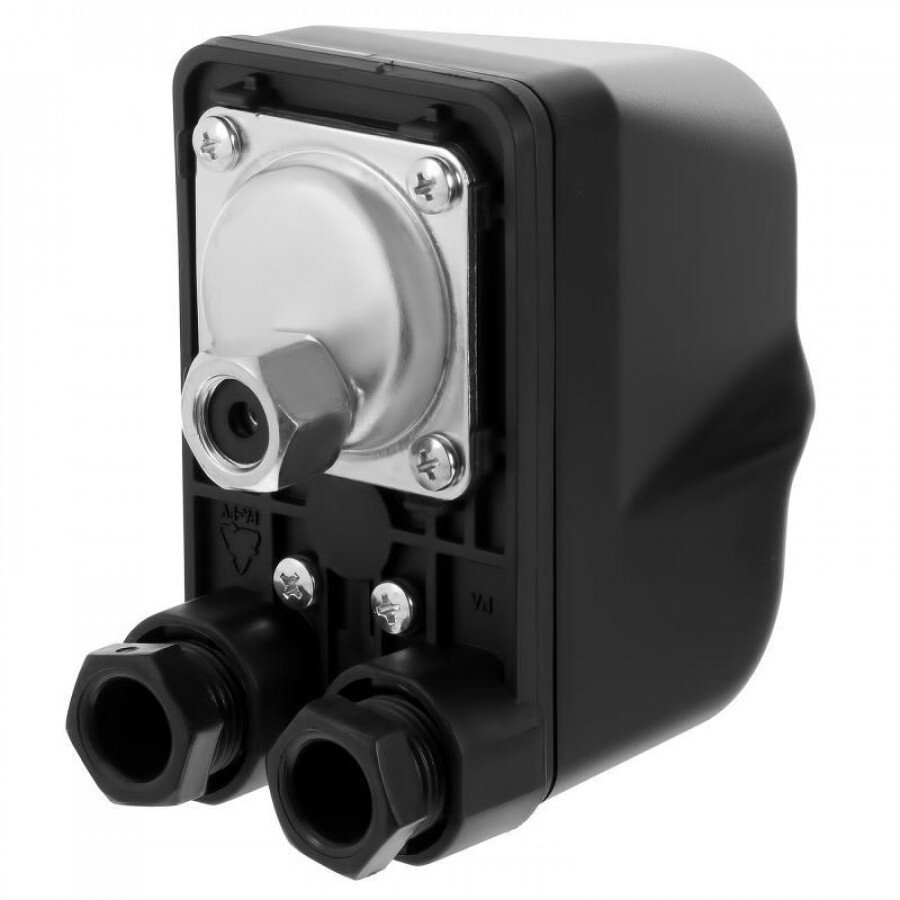 Реле давления PS-02 регулирует работу насоса относительно давления воды в системе. Устройство автоматически выключает насос при недопустимом давлении, а также включает после устранения неполадок.