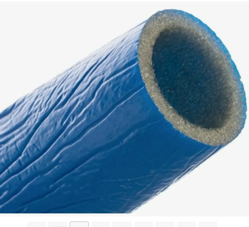 Трубная теплоизоляция на основе вспененного полиэтилена с наружным покрытием из полимерной пленки, которое на 50 % повышает прочность трубок и служит защитой материала от механических повреждений и агрессивных строительных сред.