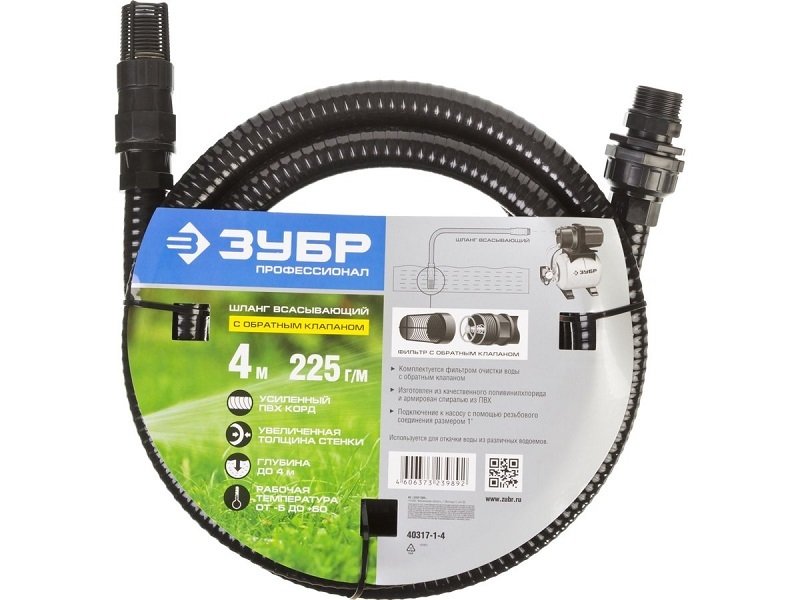 Шланг всасывающий 1" 4м + фильтр+обрат.клапан Зубр