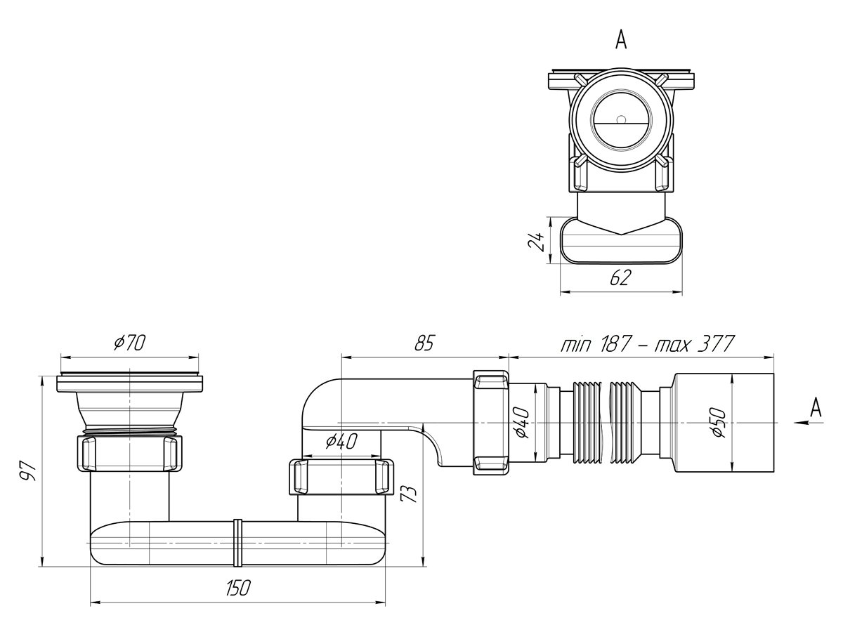 Сифон для Поддона Ани Е015 1 1/2 с гибкой трубой 40х50