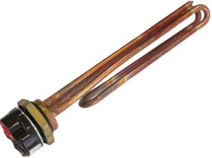 ТЭН в форме обратной гибки, выполнен в медной оболочке на латунном фланце с диаметром резьбы G1 1/4 (42мм.), используется для нагрева воды, комплектуется терморегулятором. ТЭН применяется для установки в различные емкости и последующего нагрева жидкости.