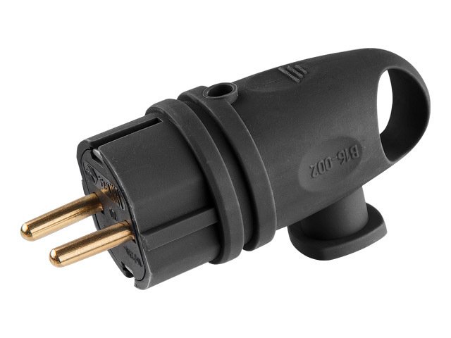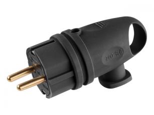 Вилка с заземлением каучук 16А угловая с ушком чёрный Юпитер В16-002