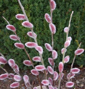 Ланцетные листья покрыты снизу серебристо-серыми волосками. Больше всего декоративности этому сорту придают пушистые розово-красные соцветия (сережки), появляющиеся в феврале. Оригинальная окраска сережек вносит новое качество в ассортимент растений, декоративных зимой. Сорт рекомендуется для высаживания в приусадебных садах и палисадниках, парках, а также для натуралистических насаждений.