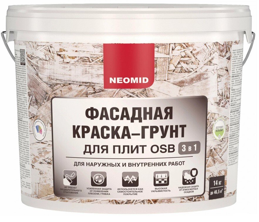 Краска-Грунт по OSB 14кг Neomid водная внутри-снаружи