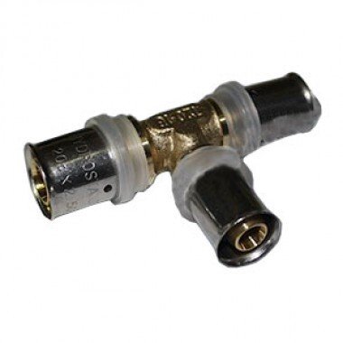 Пресс-фитинг (соединение) для металлопластиковых труб. Фитинги изготовлены из высококачественных материалов, что позволяет эксплуатировать трубопровод из металлопластиковых труб при давлении до 12 Атм. при температуре до +95 гр.Материал:- фитинг: ЛС59 (латунь сантехническая).- изоляционная прокладка: тефлон- прокладка: E.P.D.M.