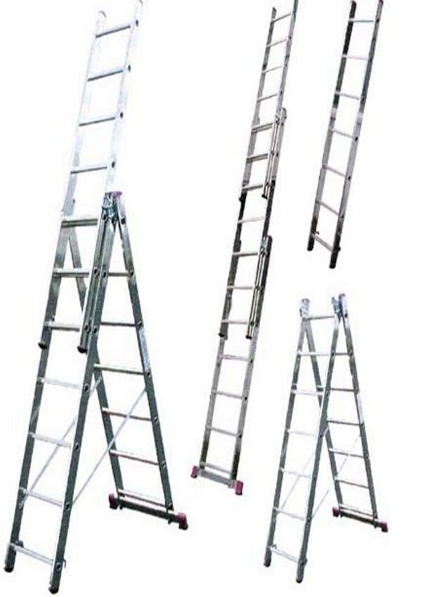 По своей конструкции алюминиевая трехсекционная лестница 3х7 схожа на обыкновенную лестницу-стремянку, но без площадки и имеет третью выдвигающуюся секцию консольного вида. Таким образом, лестница из 3-х секций обеспечивает устойчивость изделия, позволяя при этом залезть на большую высоту до 4.2 метров. Так же такую модель можно применять как приставную лестницу.
