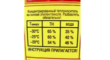 Теплоноситель, разбавленный даже до -15оС, гарантированно защитит систему от разрушения в случае аварийной остановки и при более низких показателях температуры, так как гликолевые растворы при охлаждении не расширяются в объеме. Использование же смеси с более высокой (выше оптимального значения) концентрацией гликолей может привести к их нагару на ТЭНах или в зоне горелки, что приведет к образованию смолянистых осадков, перегоранию ТЭНов и т.п.