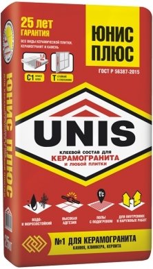 «ЮНИС ПЛЮС» рекомендуется для сложных задач: для системы «Тёплый пол», для крепления керамогранита на фасад, укладки поверх старой плитки («плитка на плитку»).