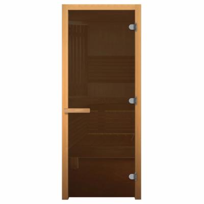 Стеклянная дверь для сауны изготовлена из высокопрочного закалённого стекла, что делает дверь максимально безопасной. Дверная коробка изготовлена из высококлассной срощенной породы древесины.